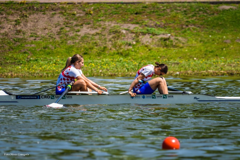 Od naših posada, sukladno pokazanom dan prije, najviše smo očekivali od djevojaka u dvojcu „bez“ – Dunje Viszmeg i Grete Dragišić, te osmerca u sastavu Jakov Slavica, Vice Alfier, Josip Brekalo, Marko Martinović, Marko Sredić, Roko Zlodre, Šime Grubišić, Toma Pavičić i Marijeta Slugan (korm.). Što smo očekivali to smo i dočekali, pa i više od toga! Valja odmah reći da je na stazi bilo dosta „sa“ vjetra (u krmu čamcima) što, svi to znamo, ponajviše odgovara tehnički dotjeranim sastavima. Uvjeti su bili kao stvoreni za Gretu i Dunju, cure koje znaju veslati i kojima čamac lijepo klizi kroz vodu, a to se i pokazalo tijekom prve 3⁄4 utrke. Bile su stalno „za petama“ vodećim sastavima Francuske i Rumunjske, a izjednačene ss sportskim rivalkama iz Austrije. Na žalost nisu izdržale do kraja, kao što ni Francuskinje nisu izdržale nalet Rumunjki: na kraju prva Rumunjska, druga Francuska, treća Austrija, a četvrta Hrvatska. Posade Italije (peta) i Litve (šesta) ni u jednom trenutku nisu bile konkurentne. Neki bi rekli kako su Greta i Dunja osvojile tzv. „drvenu medalju“, ali je istina da su svojim nastupom i te kako opravdale dolazak na ovo EP, a za vjerovati je da one mogu, znaju i hoće još i više negoli su to u ovom trenutku pokazale. Zaključno: bravo cure, vidimo vas u borbi za A-finale na predstojećem Svjetskom prvenstvu u Litvi u kolovozu!